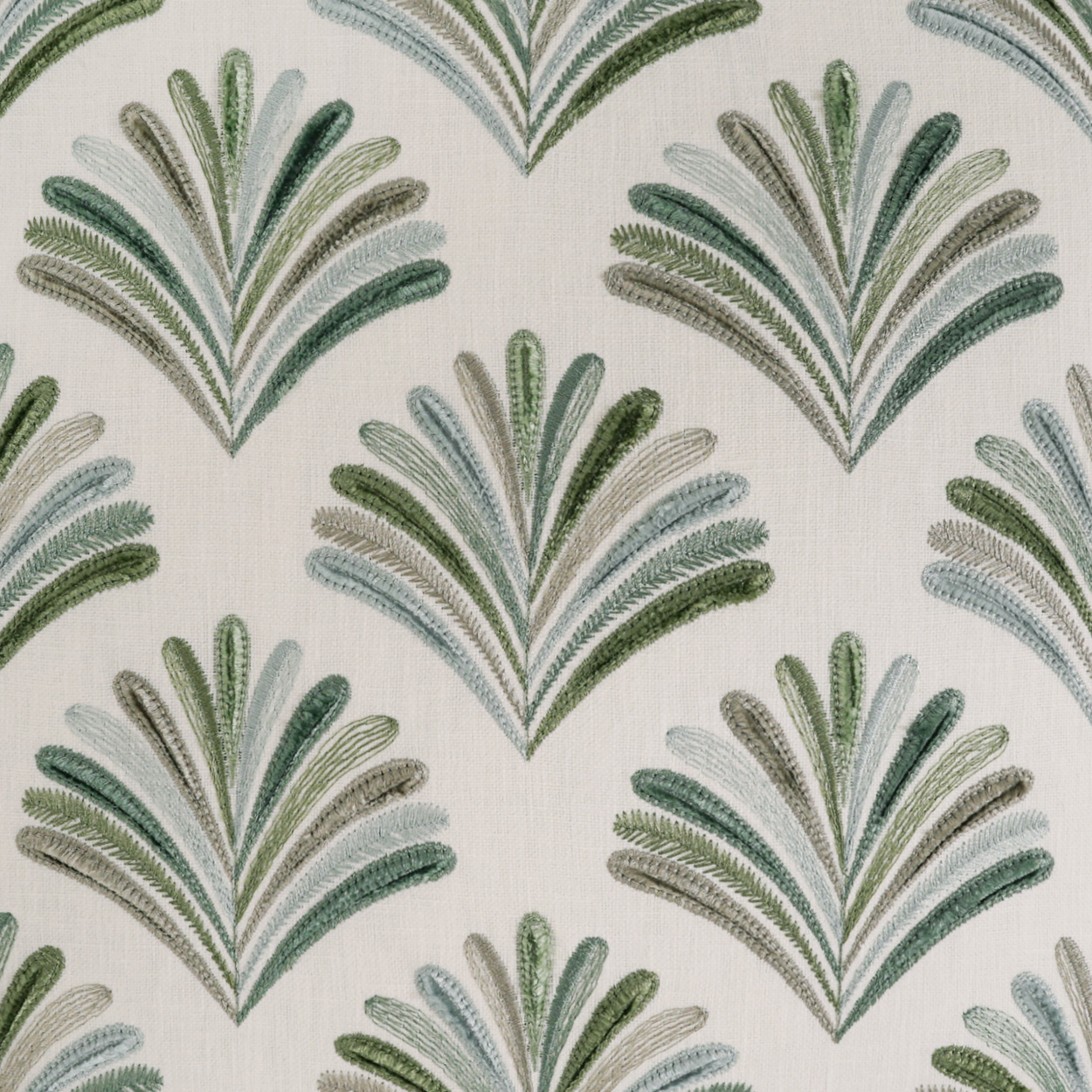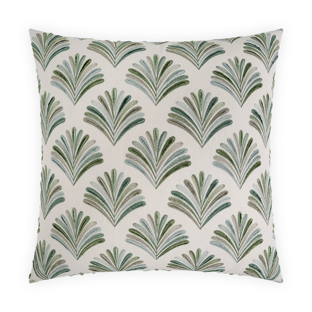 Aruba throw pillows by DV Kap Home feature a green, mist color scheme in a traditional, embroidery design. Each throw pillow includes a removable cover with hidden zipper and a 95% feather, 5% down insert. Handcrafted in California using fabrics sourced right here in the USA.