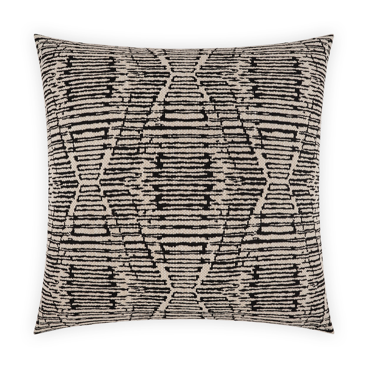 Ozetta – Ebony throw pillows by DV Kap Home feature a black color scheme in a global, farmhouse design. Each throw pillow includes a removable cover with hidden zipper and a 95% feather, 5% down insert. Handcrafted in California using fabrics sourced right here in the USA.
