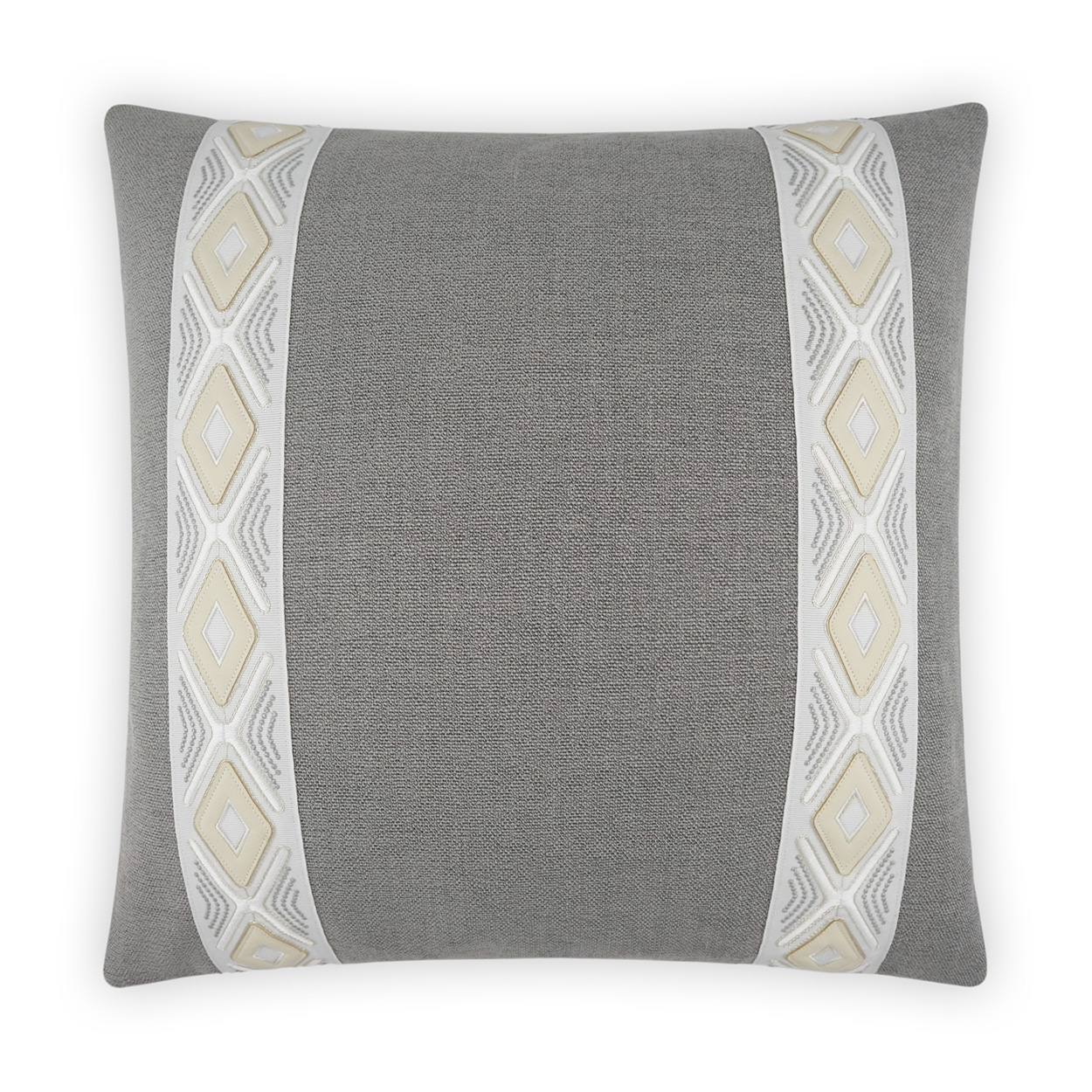 Rochelle – Dove throw pillows by DV Kap Home feature a grey color scheme in a band / ribbon, transitional design. Each throw pillow includes a removable cover with hidden zipper and a 95% feather, 5% down insert. Handcrafted in California using fabrics sourced right here in the USA.