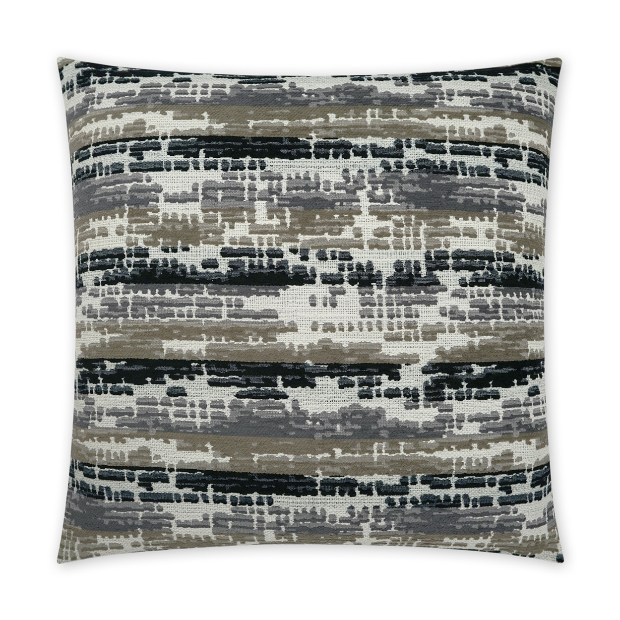 Maldon – Ebony throw pillows by DV Kap Home feature a black color scheme in a abstract, modern design. Each throw pillow includes a removable cover with hidden zipper and a 95% feather, 5% down insert. Handcrafted in California using fabrics sourced right here in the USA.