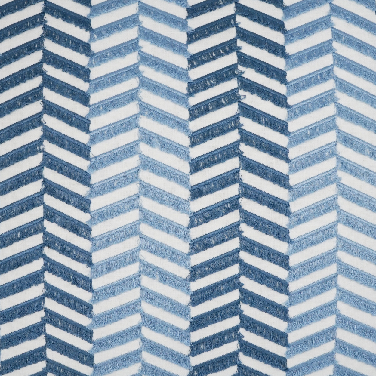 Shortcuts throw pillows by DV Kap Home feature a blue color scheme in a chevron, embroidery design. Each throw pillow includes a removable cover with hidden zipper and a 95% feather, 5% down insert. Handcrafted in California using fabrics sourced right here in the USA.