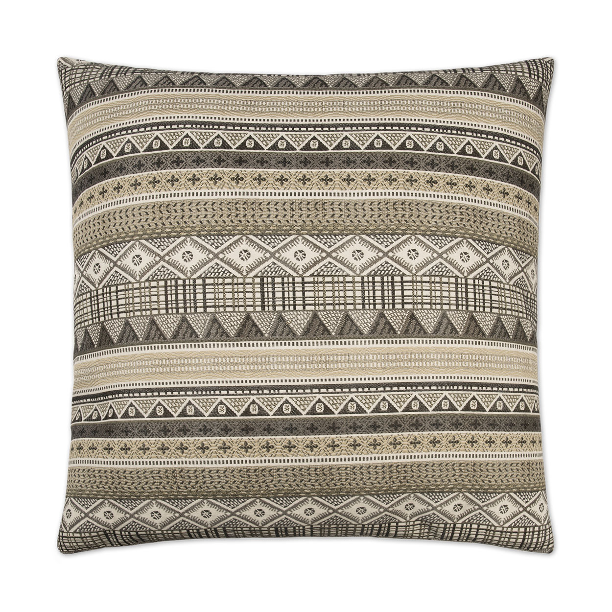Kamba throw pillows by DV Kap Home feature a tan/taupe color scheme in a western chic, global design. Each throw pillow includes a removable cover with hidden zipper and a 95% feather, 5% down insert. Handcrafted in California using fabrics sourced right here in the USA.