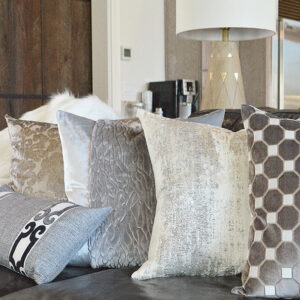 Aurora – Ice throw pillows by DV Kap Home feature a white/ivory color scheme in a transitional, abstract design. Each throw pillow includes a removable cover with hidden zipper and a 95% feather, 5% down insert. Handcrafted in California using fabrics sourced right here in the USA.
