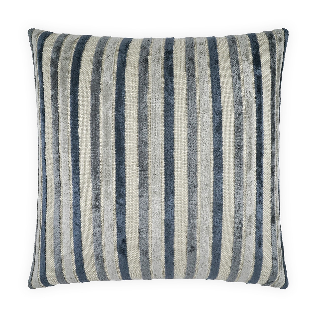 Borderline – Blue throw pillows by DV Kap Home feature a blue, slate blue color scheme in a stripes, textured design. Each throw pillow includes a removable cover with hidden zipper and a 95% feather, 5% down insert. Handcrafted in California using fabrics sourced right here in the USA.
