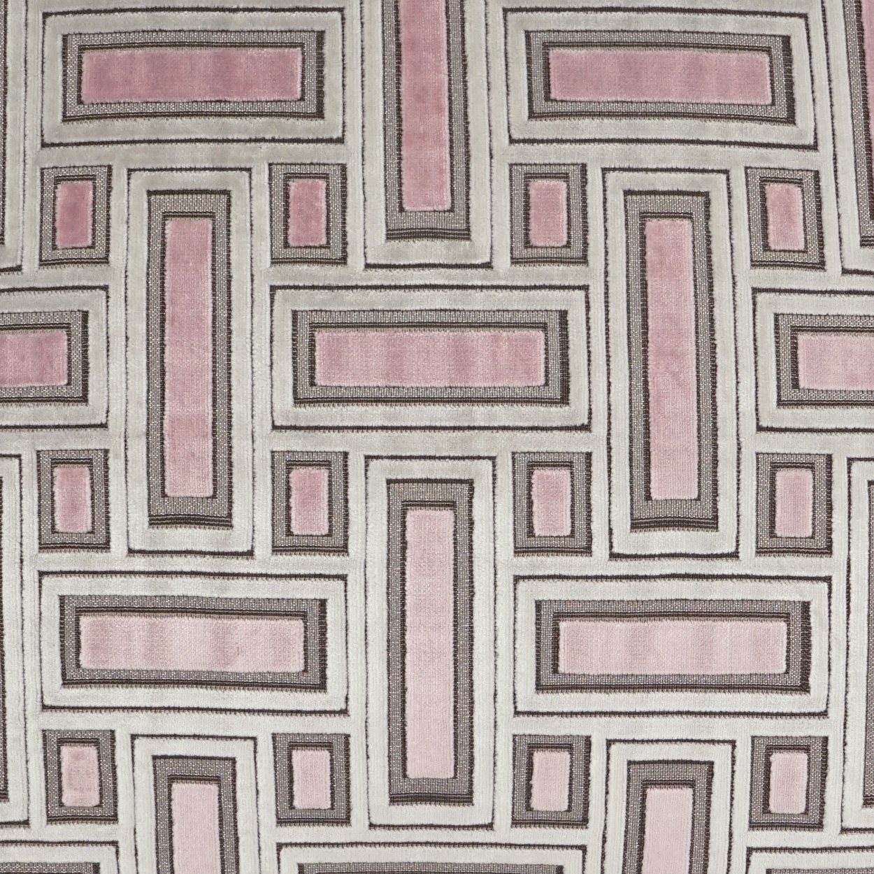 Brix – Bella throw pillows by DV Kap Home feature a blush color scheme in a transitional, geometric design. Each throw pillow includes a removable cover with hidden zipper and a 95% feather, 5% down insert. Handcrafted in California using fabrics sourced right here in the USA.