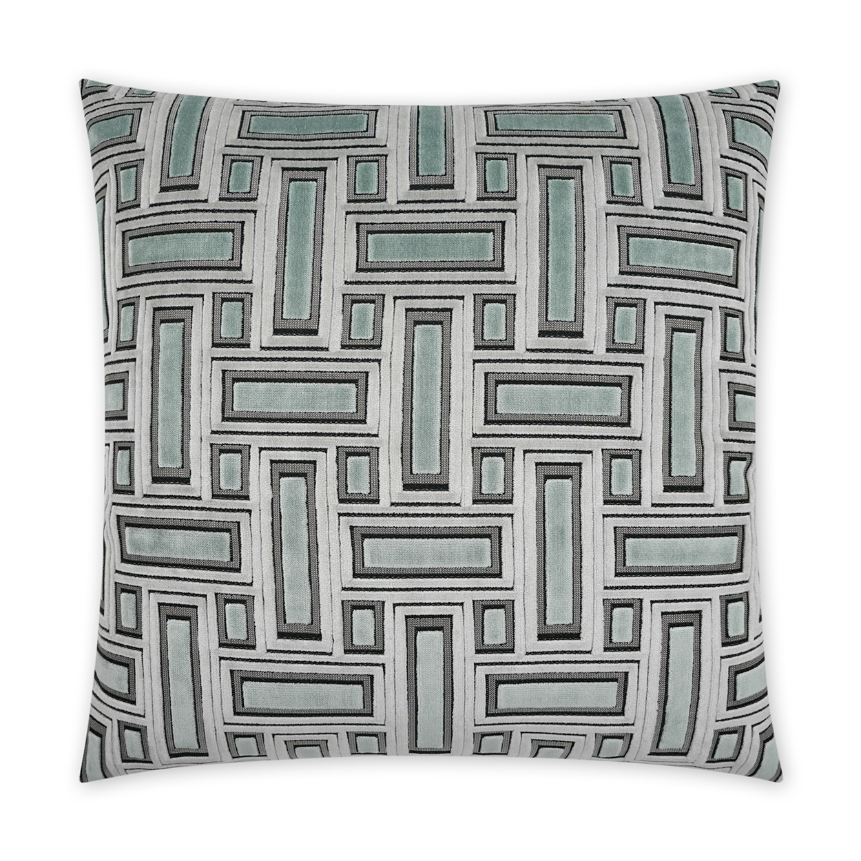 Brix – Mist throw pillows by DV Kap Home feature a mist color scheme in a transitional, geometric design. Each throw pillow includes a removable cover with hidden zipper and a 95% feather, 5% down insert. Handcrafted in California using fabrics sourced right here in the USA.