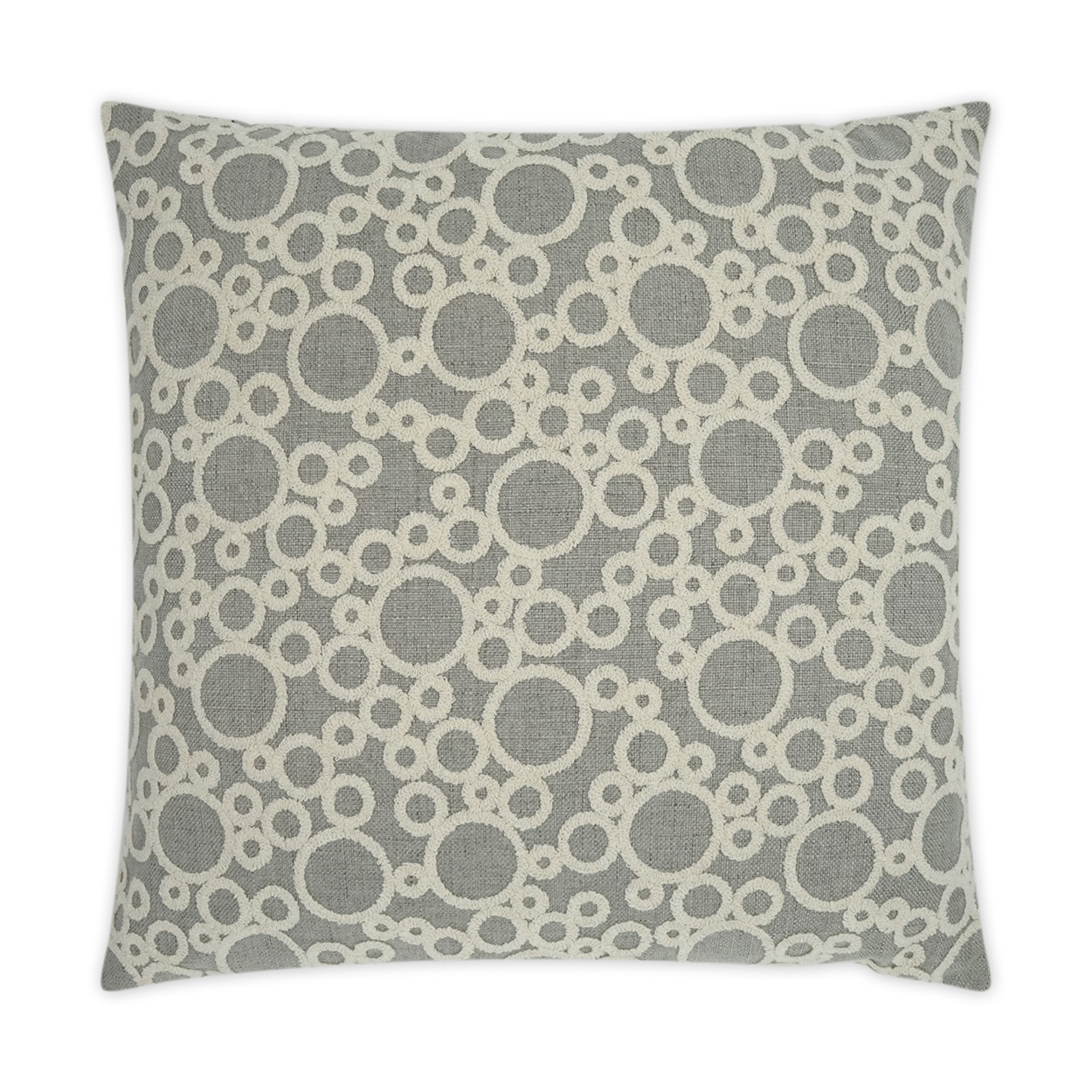Bubbles throw pillows by DV Kap Home feature a grey color scheme in a textured, circular – dots design. Each throw pillow includes a removable cover with hidden zipper and a 95% feather, 5% down insert. Handcrafted in California using fabrics sourced right here in the USA.