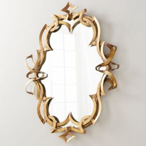 The Charcroft Mirror is the epitome of “Mirror, mirror on the wall” glamour. Sculpted of iron with a gold finish, this unique mirror dresses up any space. It is a statement piece, one that will draw eyes in from across the room. Despite its on-trend appeal, this is a timeless classic that will fit into your decor for decades to come. Amply sized at 36.25 inches long and 28.5 inches wide, the Charcroft works well over a vanity, in a hallway, as part of your boudoir or anywhere else you want to make an impact in your home.