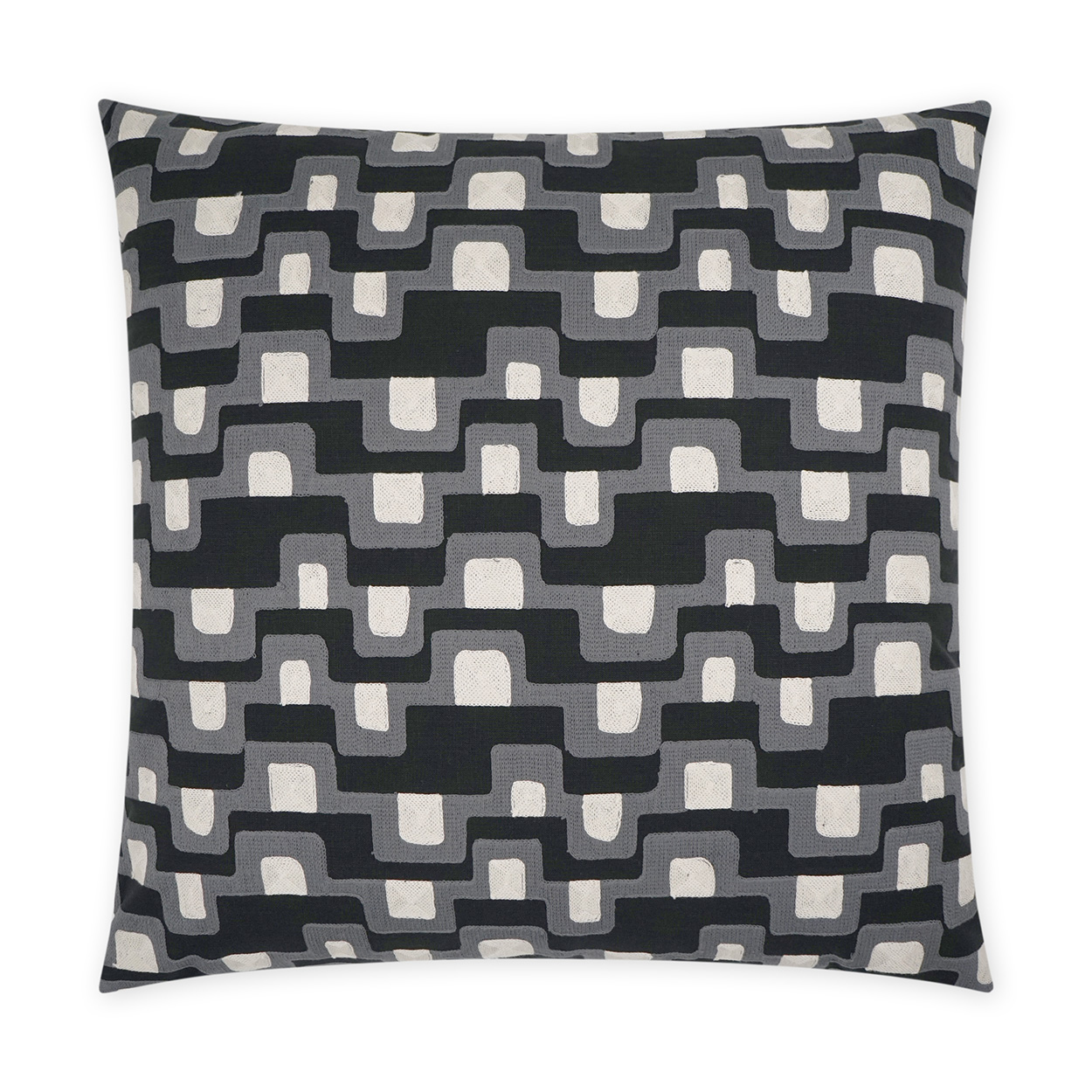 Final Touch throw pillows by DV Kap Home feature a black, grey color scheme in a abstract, modern design. Each throw pillow includes a removable cover with hidden zipper and a 95% feather, 5% down insert. Handcrafted in California using fabrics sourced right here in the USA.