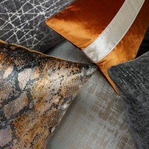 Fresco – Mist throw pillows by DV Kap Home feature a mist color scheme in a transitional, abstract design. Each throw pillow includes a removable cover with hidden zipper and a 95% feather, 5% down insert. Handcrafted in California using fabrics sourced right here in the USA.