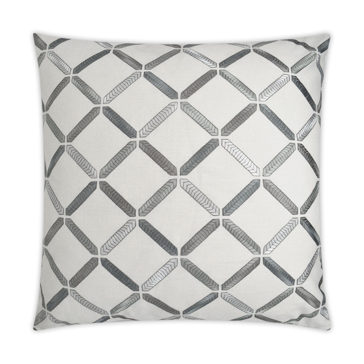 Granville – Silver throw pillows by DV Kap Home feature a silver, grey color scheme in a embroidery, transitional, geometric design. Each throw pillow includes a removable cover with hidden zipper and a 95% feather, 5% down insert. Handcrafted in California using fabrics sourced right here in the USA.