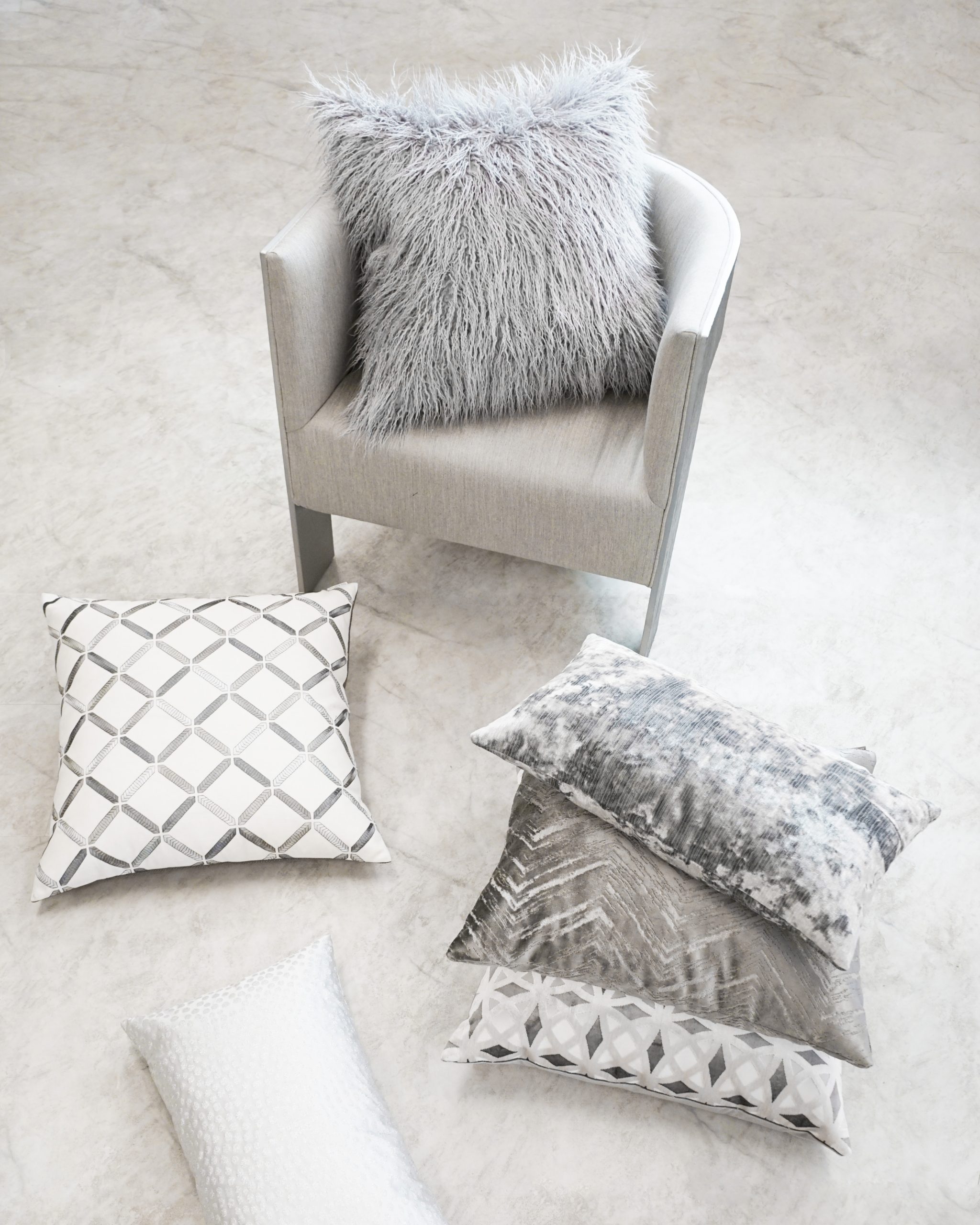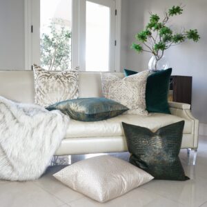 Hepburn – Crystal throw pillows by DV Kap Home feature a white/ivory color scheme in a glam, circular – dots design. Each throw pillow includes a removable cover with hidden zipper and a 95% feather, 5% down insert. Handcrafted in California using fabrics sourced right here in the USA.