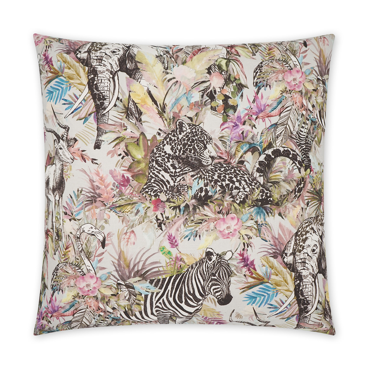 Jurassica – Potpourri throw pillows by DV Kap Home feature a blush, multi color scheme in a animal, novelty design. Each throw pillow includes a removable cover with hidden zipper and a 95% feather, 5% down insert. Handcrafted in California using fabrics sourced right here in the USA.