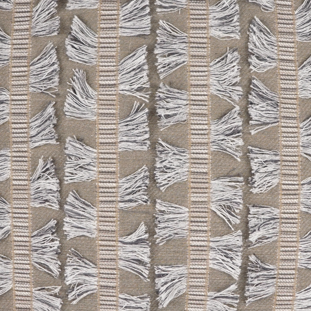 Myro throw pillows by DV Kap Home feature a grey, tan/taupe color scheme in a textured, global design. Each throw pillow includes a removable cover with hidden zipper and a 95% feather, 5% down insert. Handcrafted in California using fabrics sourced right here in the USA.