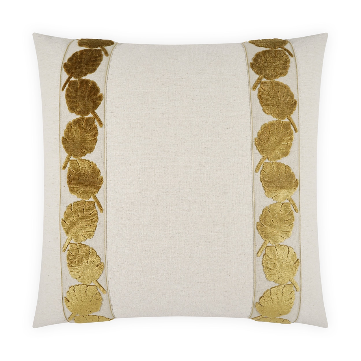 Palm Leaf Mini – Midas throw pillows by DV Kap Home feature a gold color scheme in a floral, band / ribbon design. Each throw pillow includes a removable cover with hidden zipper and a 95% feather, 5% down insert. Handcrafted in California using fabrics sourced right here in the USA.