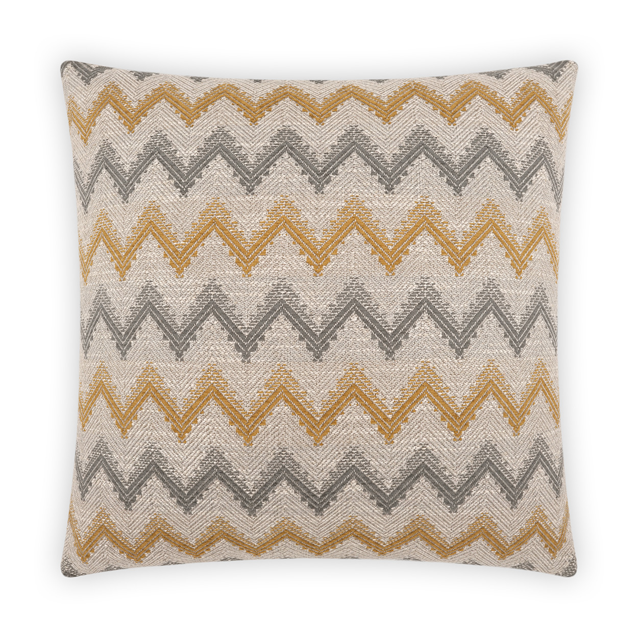Parquet – Gold throw pillows by DV Kap Home feature a yellow color scheme in a global, chevron design. Each throw pillow includes a removable cover with hidden zipper and a 95% feather, 5% down insert. Handcrafted in California using fabrics sourced right here in the USA.