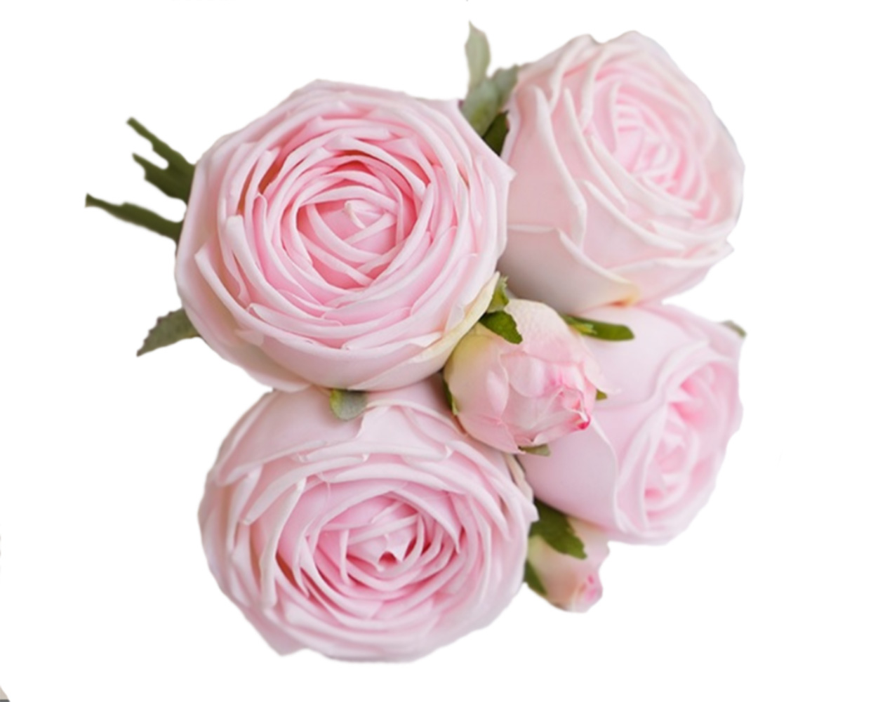 This magical collection of roses tricks the eye with its incredibly realistic appearance. With four fully opened blooms and two delicate buds, each stem can be gently positioned exactly where you want it.