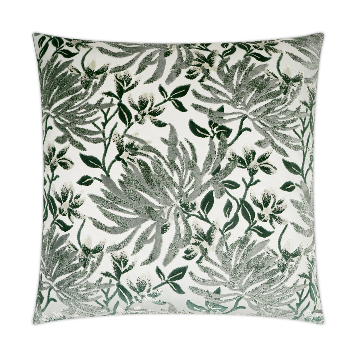 Sadah – Thyme throw pillows by DV Kap Home feature a green, grey color scheme in a floral design. Each throw pillow includes a removable cover with hidden zipper and a 95% feather, 5% down insert. Handcrafted in California using fabrics sourced right here in the USA.