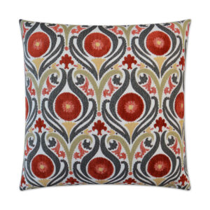 Serenade – Blaze throw pillows by DV Kap Home feature a red color scheme in a traditional, floral design. Each throw pillow includes a removable cover with hidden zipper and a 95% feather, 5% down insert. Handcrafted in California using fabrics sourced right here in the USA.