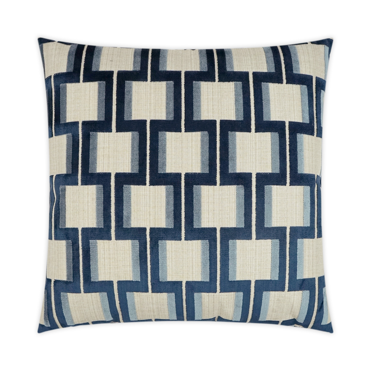 Shoreham – Indigo throw pillows by DV Kap Home feature a navy color scheme in a geometric design. Each throw pillow includes a removable cover with hidden zipper and a 95% feather, 5% down insert. Handcrafted in California using fabrics sourced right here in the USA.