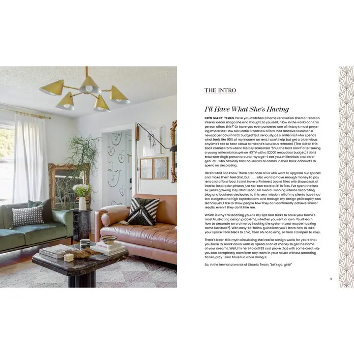 “[R]eaders can expect solid, on-a-budget decorating hacks that will save some major dollars: ‘champagne taste on a Diet Coke budget.’…Truly, there’s advice in every sentence…”—Booklist Magazine