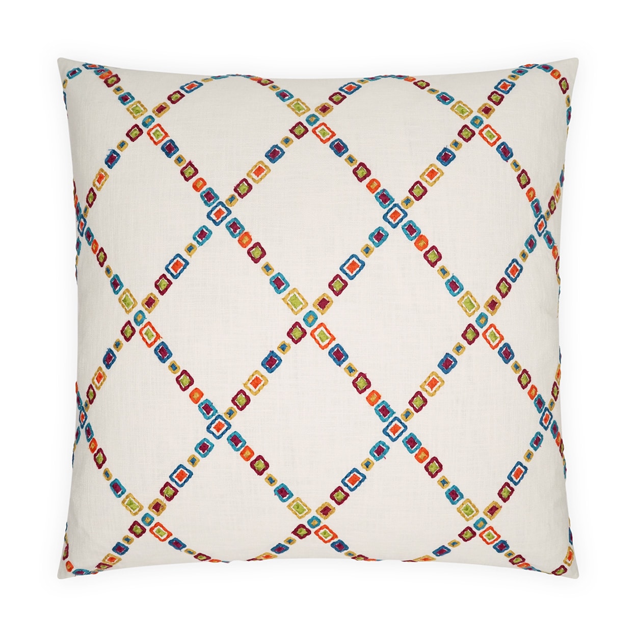 Soleil throw pillows by DV Kap Home feature a multi color scheme in a geometric, modern design. Each throw pillow includes a removable cover with hidden zipper and a 95% feather, 5% down insert. Handcrafted in California using fabrics sourced right here in the USA.