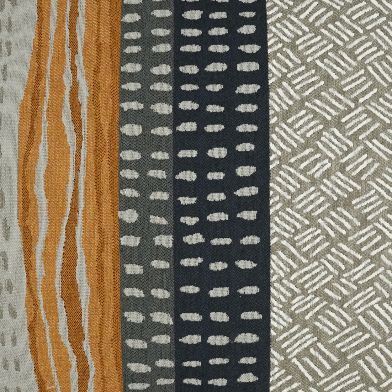 Tracks throw pillows by DV Kap Home feature a multi color scheme in a western chic, abstract, global design. Each throw pillow includes a removable cover with hidden zipper and a 95% feather, 5% down insert. Handcrafted in California using fabrics sourced right here in the USA.