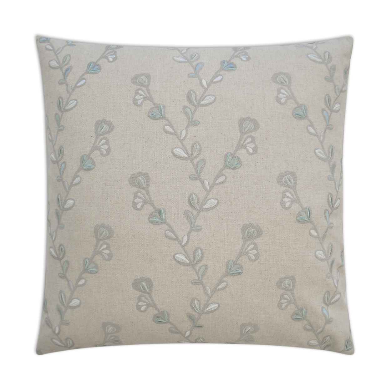 Willow – Spa throw pillows by DV Kap Home feature a mist color scheme in a floral design. Each throw pillow includes a removable cover with hidden zipper and a 95% feather, 5% down insert. Handcrafted in California using fabrics sourced right here in the USA.