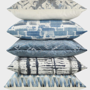 X Factor – Indigo throw pillows by DV Kap Home feature a blue color scheme in a abstract design. Each throw pillow includes a removable cover with hidden zipper and a 95% feather, 5% down insert. Handcrafted in California using fabrics sourced right here in the USA.
